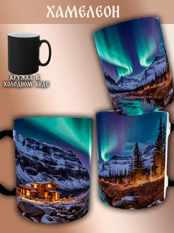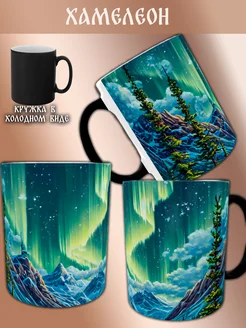 Кружка Хамелеон Космос Северное сияние с горами и закатом