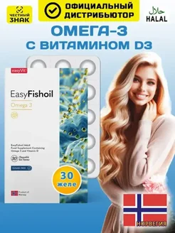 Омега 3 рыбий жир Витамин Д 3 для взрослых желе Норвегия
