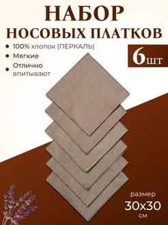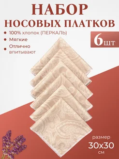 Носовые платки бежевые, ткань перкаль 6 шт. мягкие набор