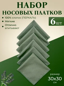 Носовые платки зеленые однотонные перкаль 6 шт. мягкие