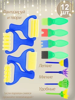 Валики и кисти художественные для рисования, поролон, 12 шт