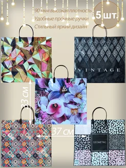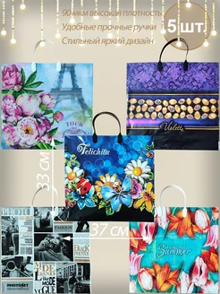 Пакет с пластиковой ручкой плотный набор 5 шт