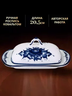 Масленка фарфоровая "Классическая" Ручная роспись 8,5х20,5см