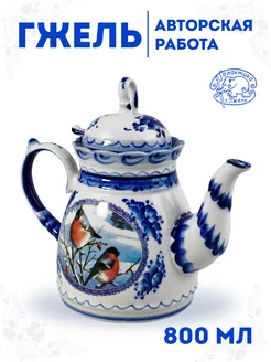 Чайник 800мл "Подарочный.Снегири с ситечком".Фарфор