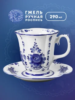 Чайная пара 200 мл, чашка с блюдцем "Грация" ручная работа