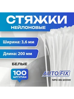 Стяжки пластиковые 3,6х200мм, белые, 100 шт, NPC-36-200W