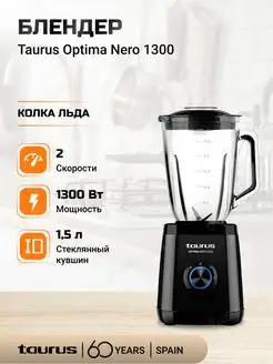 Блендер стационарный мощный Optima Nero 1300 стекло