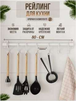Рейлинг для кухни белый с крючками органайзер кухонный