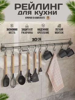 Рейлинг для кухни серый с крючками органайзер кухонный