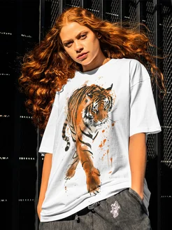 Футболка оверсайз унисекс с принтом "Портрет тигра"