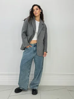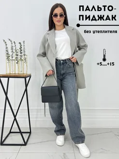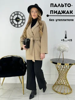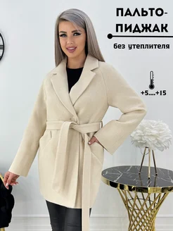 Пальто пиджак весеннее укороченное с поясом оверсайз
