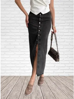 Юбка джинсовая длинная с разрезом спереди на пуговицах