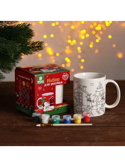 Набор кружка под раскраску "Новогодняя" краска 6 цв по 2 мл