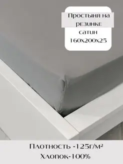 Простыня натяжная из сатина на резинке 160х200х25 см