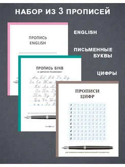 Набор из 3 прописей цифры, русские и английские буквы