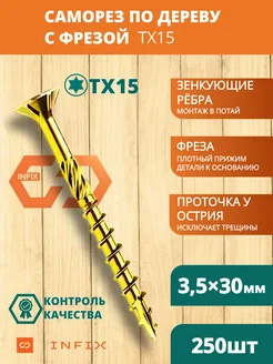 Саморезы по дереву желтые с фрезой 3,5х30 TX 15 250 шт