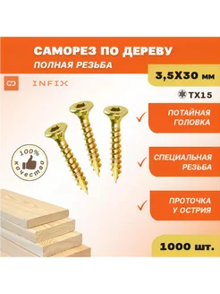 Саморезы по дереву полная резьба 3,5х30 1000 шт