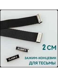 Зажим-концевик для лент тесьмы, 20х7х5 мм, серебро, 10 шт