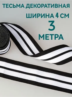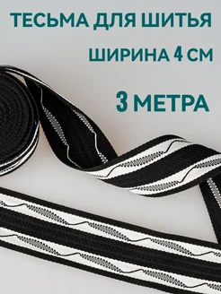 Тесьма для шитья черная с полосками ш.4 см, 3 м
