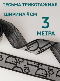 Тесьма трикотажная черная с серым ш.4 см, 3 м