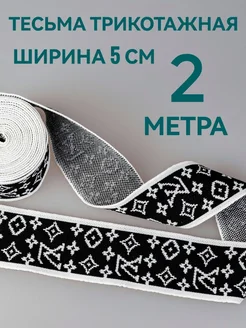 Тесьма трикотажная черная с белым принтом ш.5 см, 2 м
