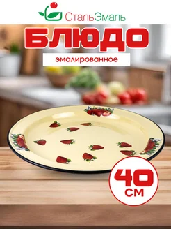 Поднос 40 см блюдо эмалированное 3,0л Клубника садовая