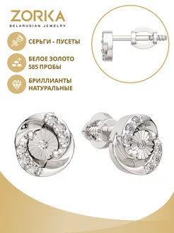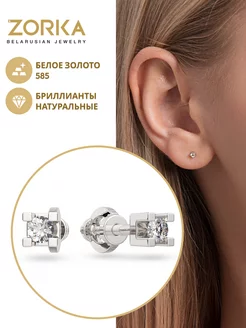 Серьги гвоздики белое золото 585 с натуральными бриллиантами
