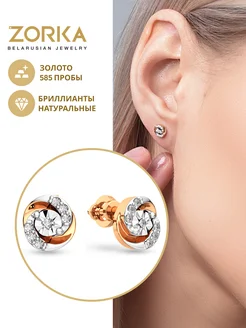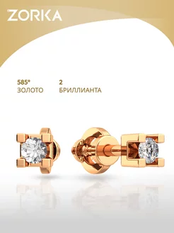 Серьги гвоздики золотые 585 с натуральными бриллиантами