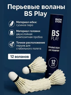Воланы для бадминтона перьевые BS Play – 12шт (77 скорость)