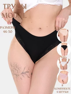 Трусы-макси с кружевом в наборе 4 штук