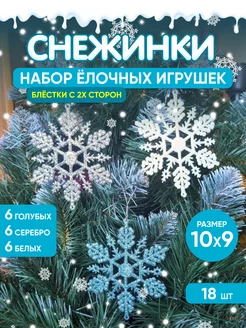 Новогодние украшения елочные игрушки снежинки на елку набор