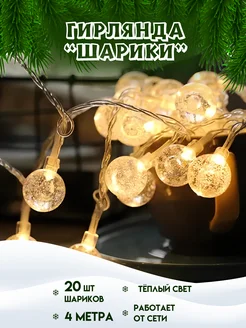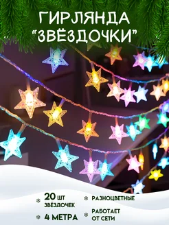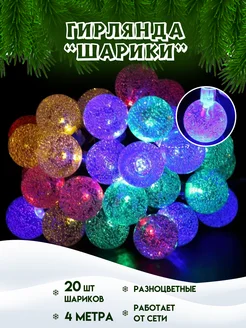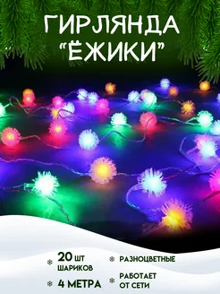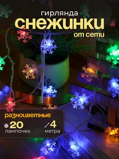 Гирлянда пушистые снежинки новогодняя на елку разноцветная
