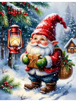 Картина по номерам 40х50 Новогодний гном