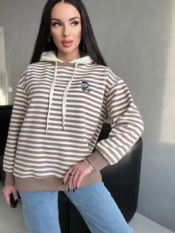 Худи оверсайз без начеса с принтом в полоску