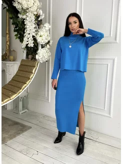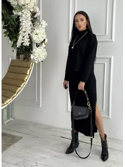 костюм вязаный с юбкой лапшой