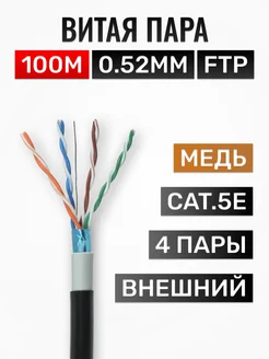 Витая пара FTP Cat.5e, 4-пары, 0.52мм, медь, внешний, 100м