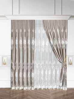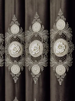 Шторы бархат с вышивкой готовые велюровые 200х270