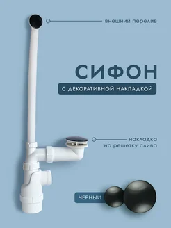 Сифон с переливом с чёрной накладкой