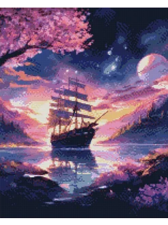 Алмазная мозаика "Корабль на закате" без подрамника 40х50