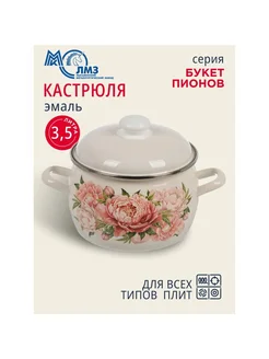 Чайник 3.5л эмалированная сталь, индукция, Букет пионов