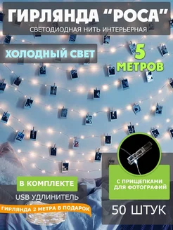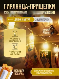 Светодиодная интерьерная гирлянда прищепки для фото