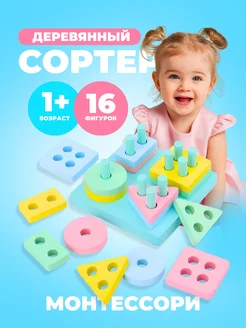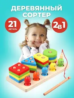 Сортер деревянные игрушки геометрические фигуры рыбалка