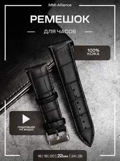 Ремешок для часов кожаный 16 18 20 22 24 26 мм черный