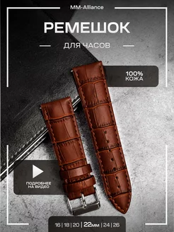 Ремешок для часов кожаный 16 18 20 22 24 26 мм коричневый