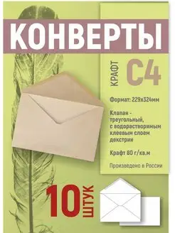 Крафтовые бумажные конверты С4 (229х324 мм) - 10 шт