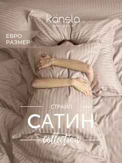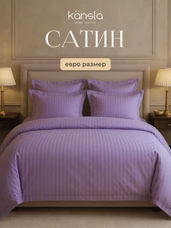 Постельное белье Евро 2 спальное страйп сатин хлопок кпб
