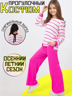 Костюм брючный лапша осенний в рубчик
