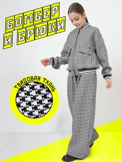 Костюм бомбер и брюки школьный твидовый