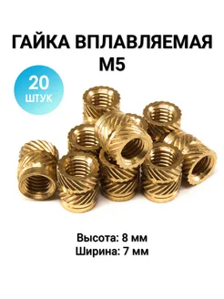 Гайка вплавляемая М5 латунная с накаткой, 20 штук