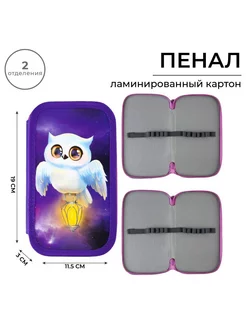 Пенал школьный 2 секции 190 х 105 лам.кар «Совушка»